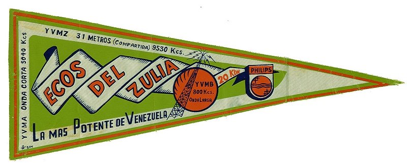 Ecos Del Zulia - YV5MO - 1947, Pennant ![]() QSL Courtesy of Kermit Geary (USA)