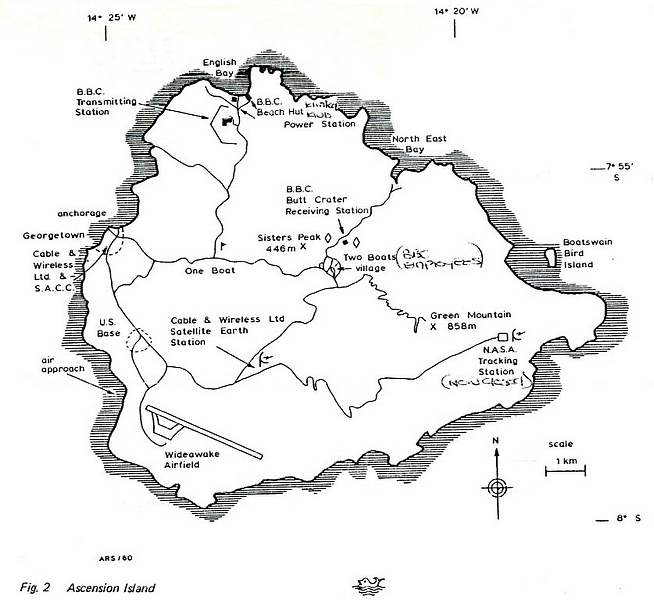 BBC Relay - 1969, 1977, 1986, Anniversary Postage Stamp, Island Map