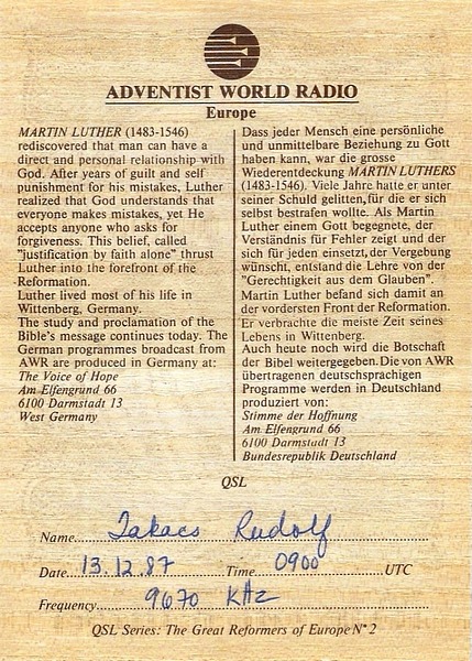 AWR - Sines - 1982 ![]() ![]() QSL Contributed by Istvan Hegedus (Hungary)