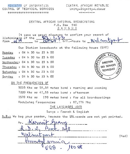 Radio Bangui - 1971, 1973