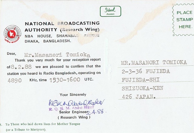 QSL Contributed by Masanori Tomioka (Japan)