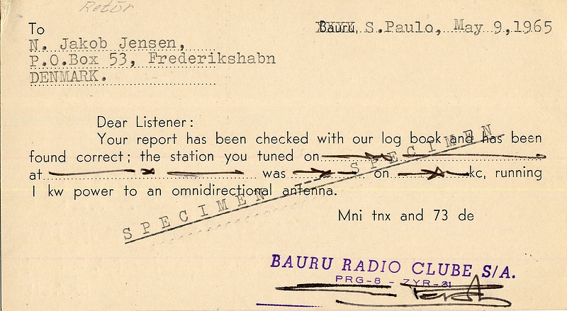 QSL Courtesy of the "Niels J Jensen Collection, Danish Shortwave Club International (DSWCI), Radio Heritage Foundation"
