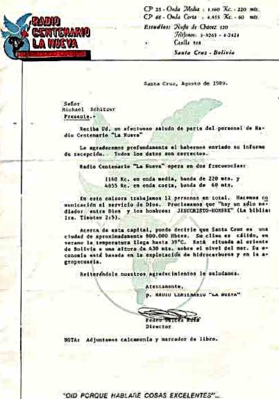 QSL Contributed by Michael Schnitzer (Germany) Radio Centenario "La Nueva" - 1991 ![]()