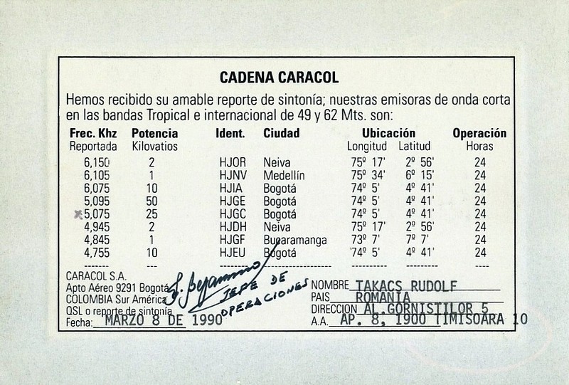QSL Contributed by Rudolf Takacs (Romania)