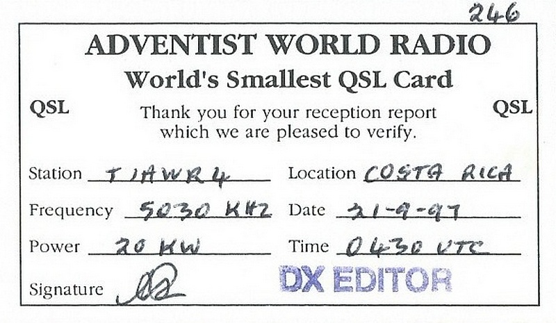 Adventist World Radio - Cahuita - 1997(2), 1998, 1999(2)