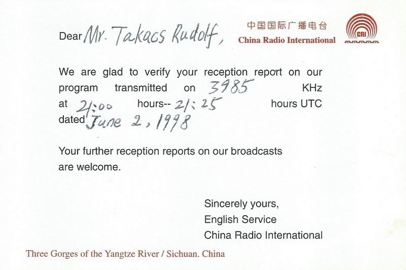 QSL Contributed by Rudolf Takacs (Romania)