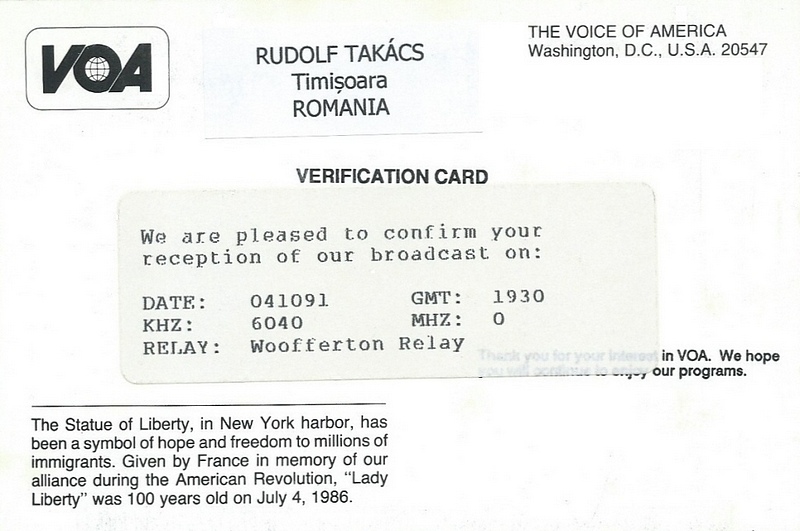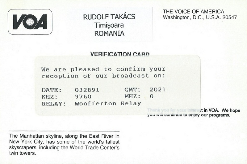 VOA - Woofferton, 1984 ![]() QSL Contributed by Tom McElvy (USA)