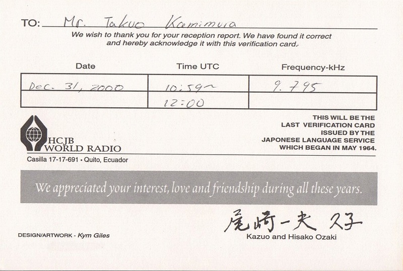 1975, 1976, 1977, 1978, Sticker 1981, 1982, 1983, 1984, 1987, 1991(2), 1992(2), 1995, 1996, 1998(2), 2000 Japanese Service Ends HCJB - 1938 (Picture on card depicts new transmission site/building activated in 1938)
