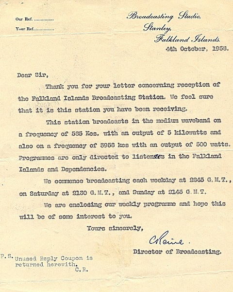 Falkland Islands Broadcasting Station - 1958, 1984