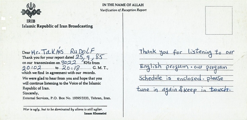 Voice of the Islamic Republic of Iran - 1992 QSL Contributed by Dan Grégoire (Canada)