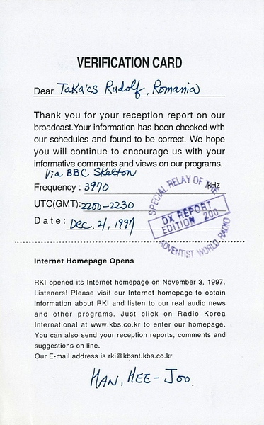 KBS Radio Korea - Skelton - 1993, 1997, 2008