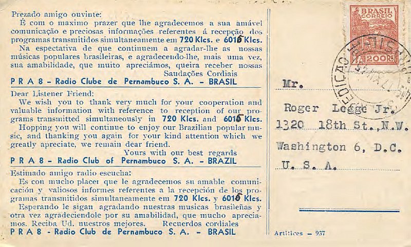 QSL and Sticker Contributed by Istvan Hegedus (Hungary) Radio Clube Pernambuco - 1974 ![]() ![]() QSL Contributed by Istvan Kiss (Hungary)