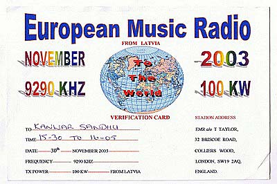 QSL Contributed by Kanwar Sandhu (India)