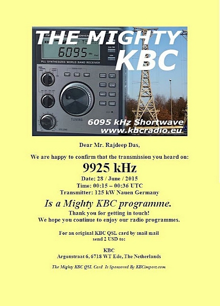 QSL Contributed by Rajdeep Das (India)