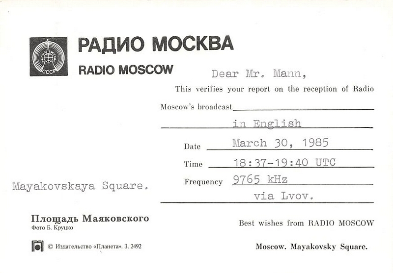 Radio Moscow via Lvov - 1982, 1983, 1985, 1990