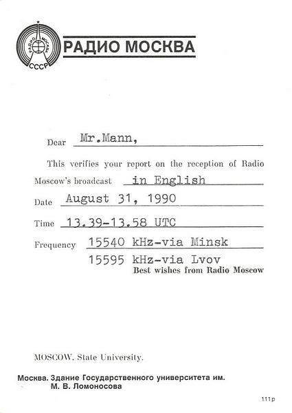 Radio Moscow via Lvov - 1990