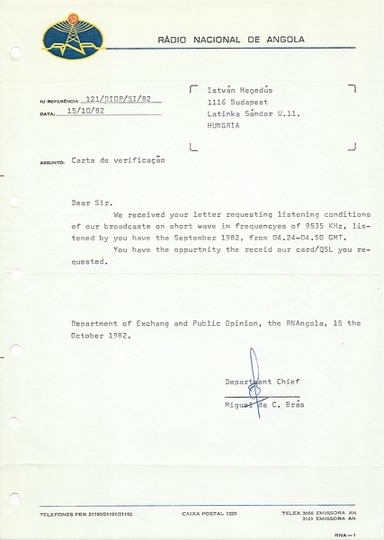 Radio Nacional de Angola - 1982