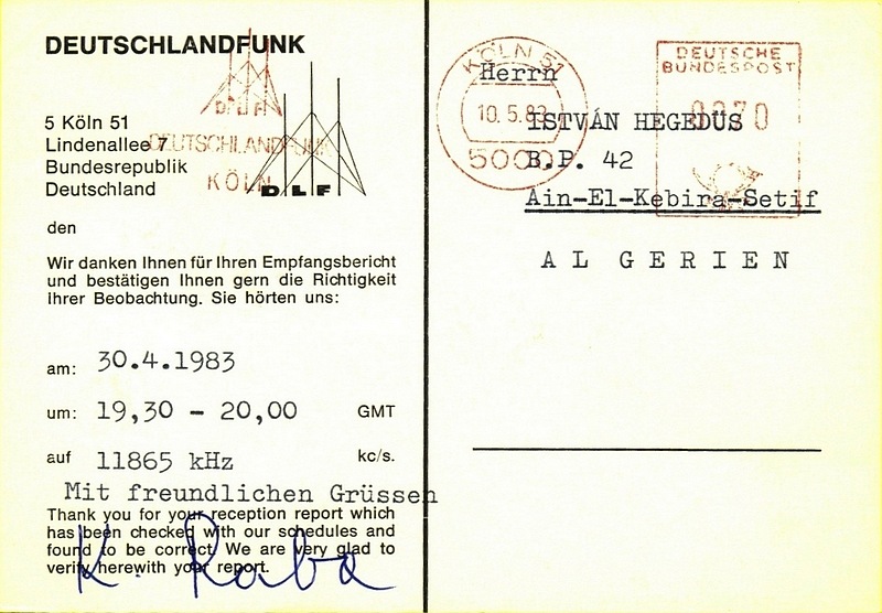 QSL Contributed by Istvan Hegedus (Hungary) Deutschlandfunk - Julich - 1983