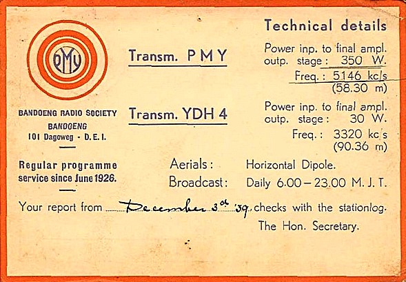 Bandoeng Radio Society - PMY/YDH4 - West Java - 1939