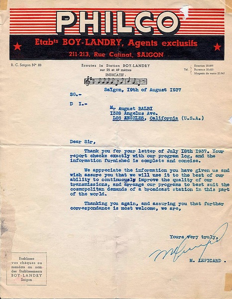 Philco Boy-Landry Radio Station / Radio - Saigon - 1937, 1945, 1947