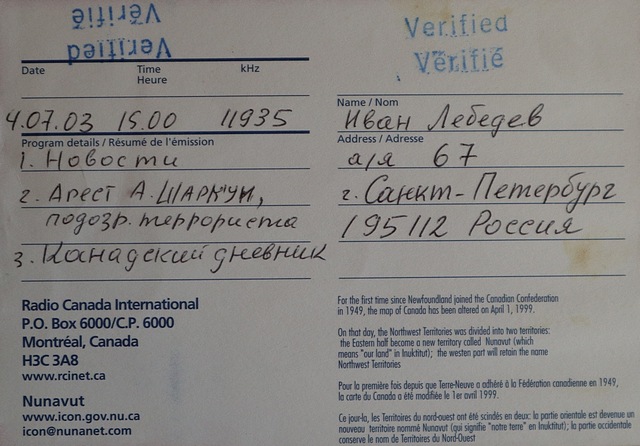 QSL Contributed by Ivan Lebedev (Russia)