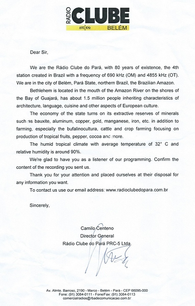 QSL Contributed by Rudolf Takacs (Romania) Radio Clube do Para Station Info