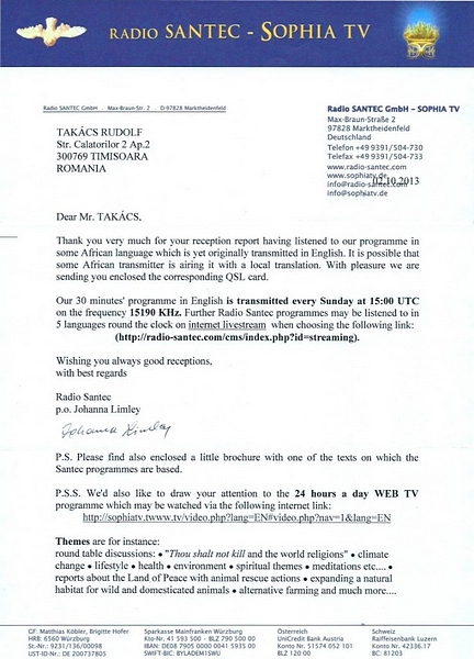 Radio Santec via IRRS, Info Letter
