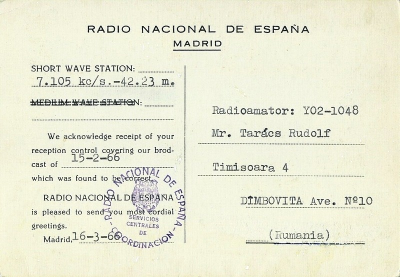 QSL Contributed by Rudolf Takacs (Romania)