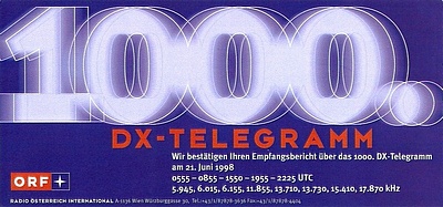 ORF DX Program Special 1000 DX Telegramm - 1998