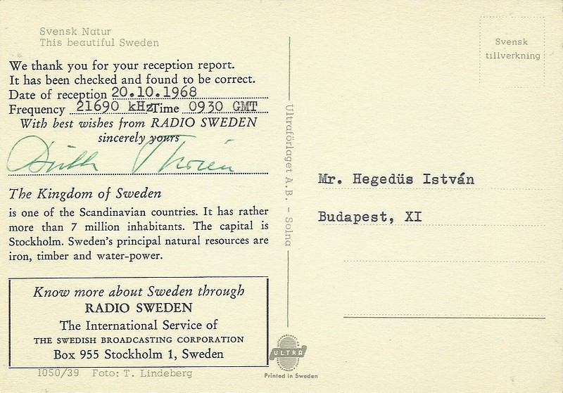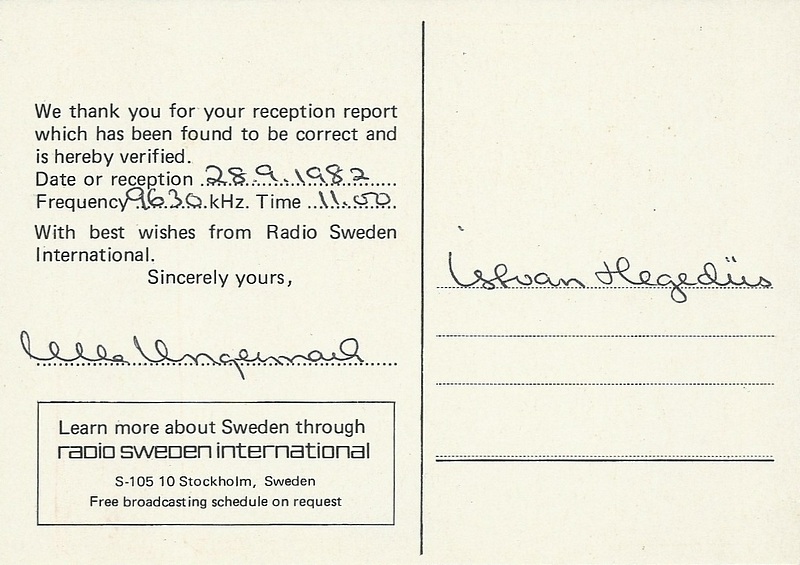 Radio Sweden - 1982 ![]() ![]() QSL Contributed by Istvan Hegedus (Hungary)