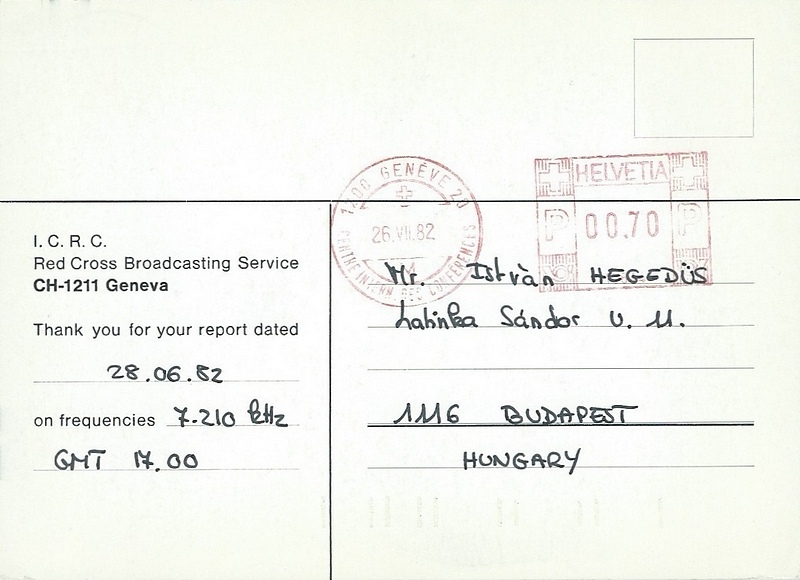 QSL Contributed by Istvan Kiss (Hungary) Red Cross Broadcasting Service - 1982