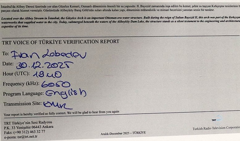 QSL Contributed by Boris Chastoedov (Russia) Voice of Turkey - 2007 ![]()