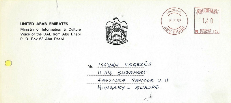 ![]() UAE Sticker ![]() QSL and Sticker Contributed by Istvan Hegedus (Hungary)