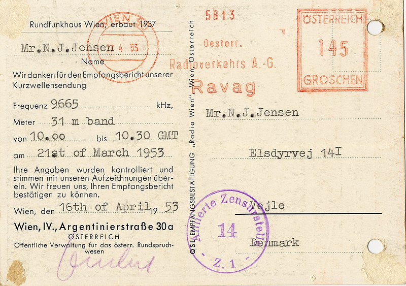 QSL Courtesy of the "Niels J Jensen Collection, Danish Shortwave Club International (DSWCI), Radio Heritage Foundation"