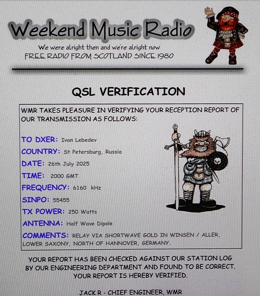 QSL, Info Page and Studio Photo Contributed by Ivan Lebedev (Russia)