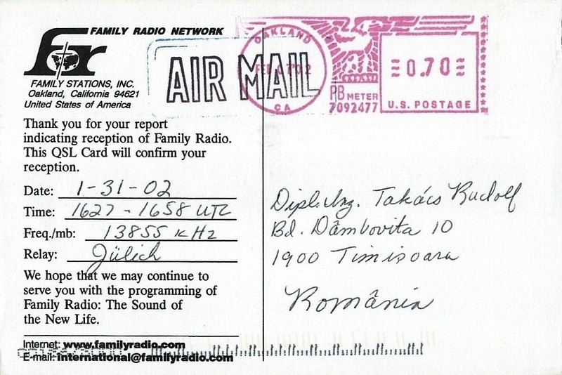 QSL Contributed by Rudolf Takacs (Romania)
